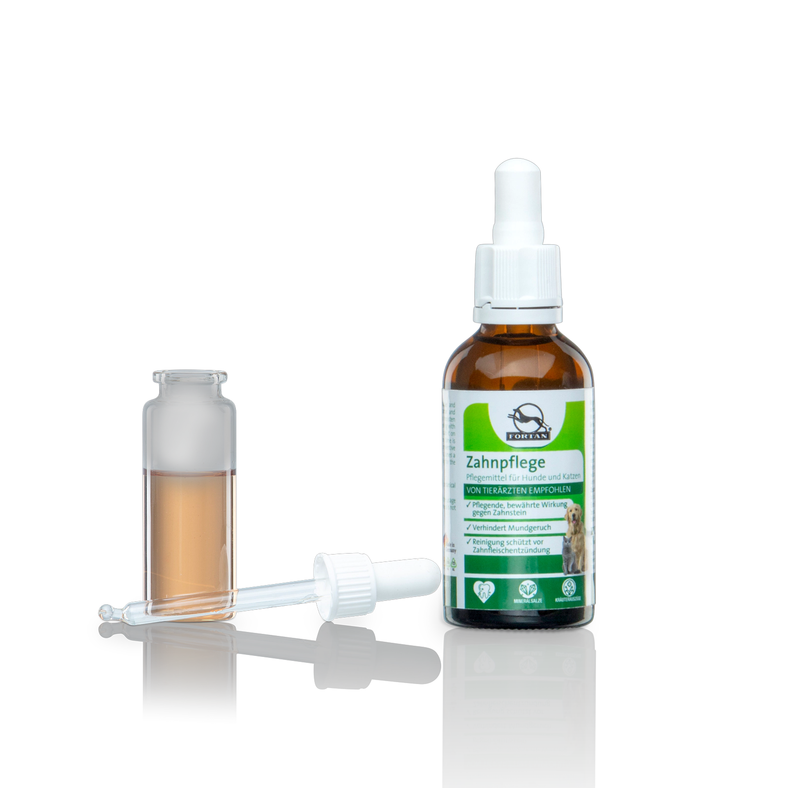 FORTAN Zahnpflege hat eine lange Geschichte: Seit über siebzig Jahren vertrauen Tierhalter auf dieses Produkt, um die tägliche Zahnpflegeroutine ihrer Hunde und Katzen zu ergänzen. Bei der Entwicklung wurde darauf geachtet, dass die Anwendung unkompliziert ist und sich harmonisch in den Alltag mit dem Tier einfügt. Die Tinktur kann einfach auf ein weiches Tuch oder einen speziellen waschbaren Fingerling aufgetragen und vorsichtig an den Zähnen entlanggeführt werden.